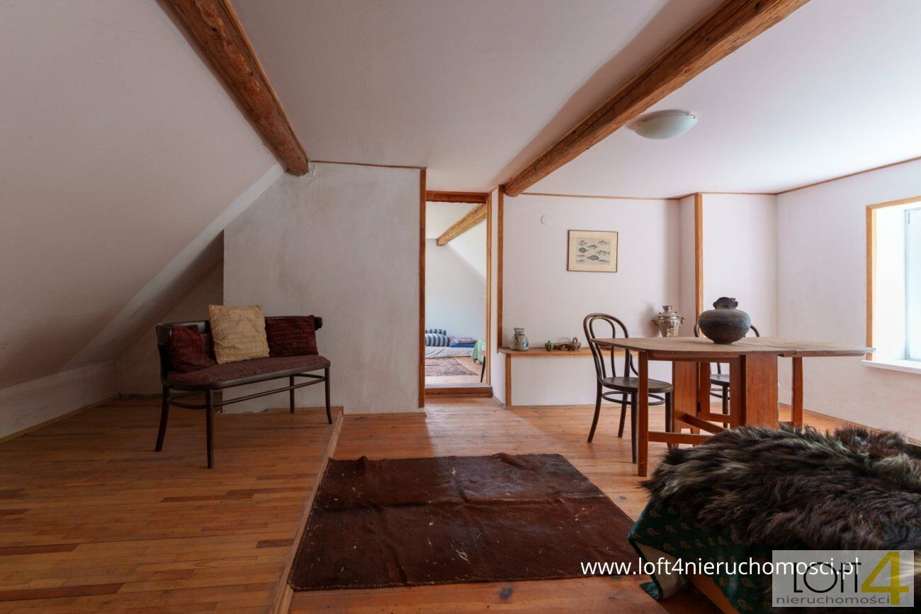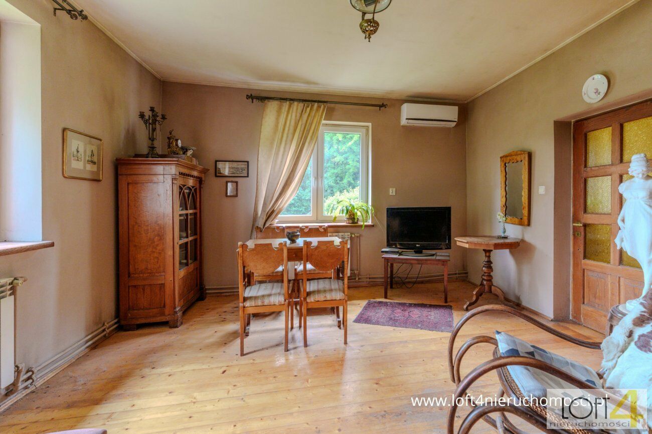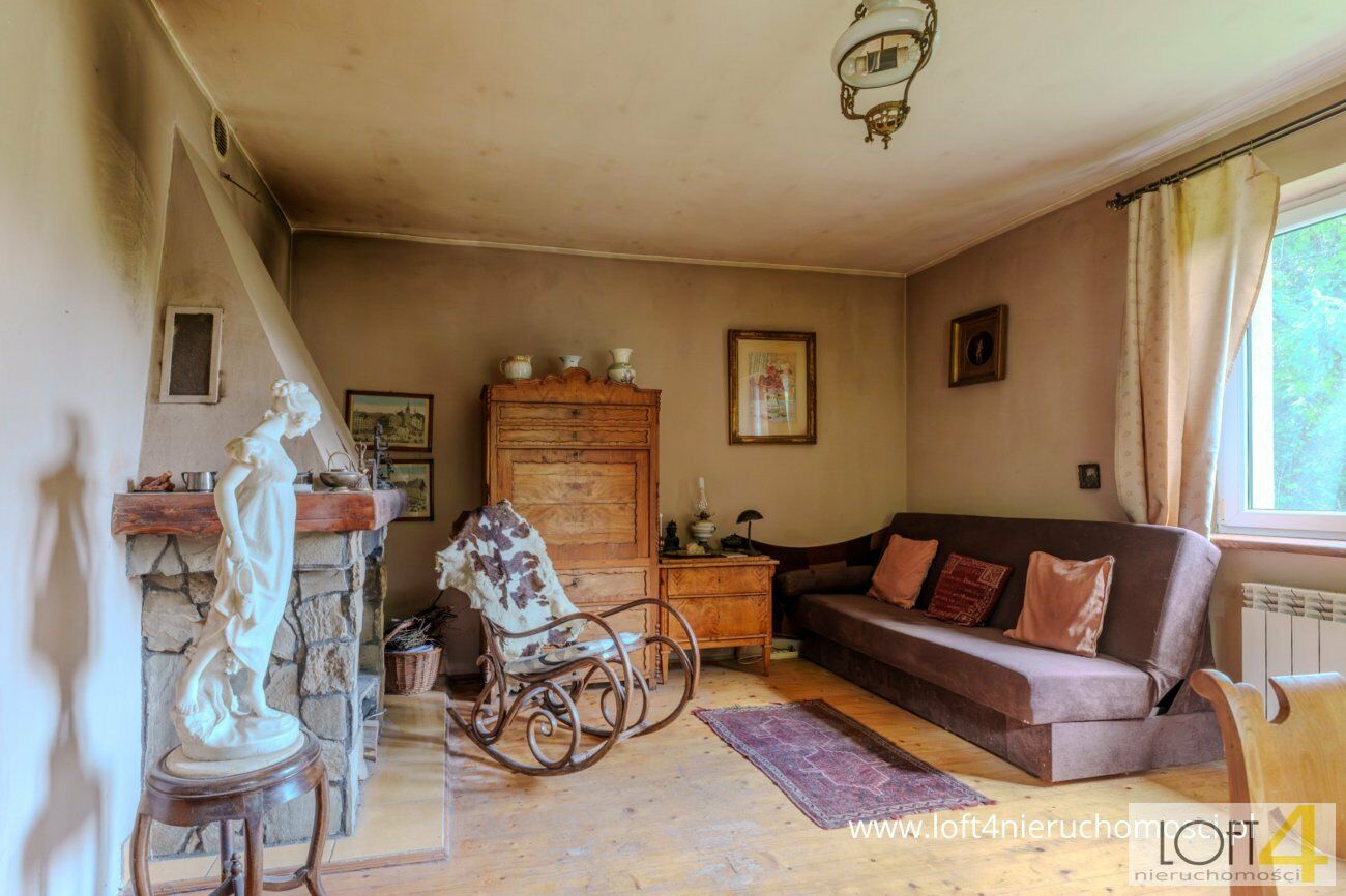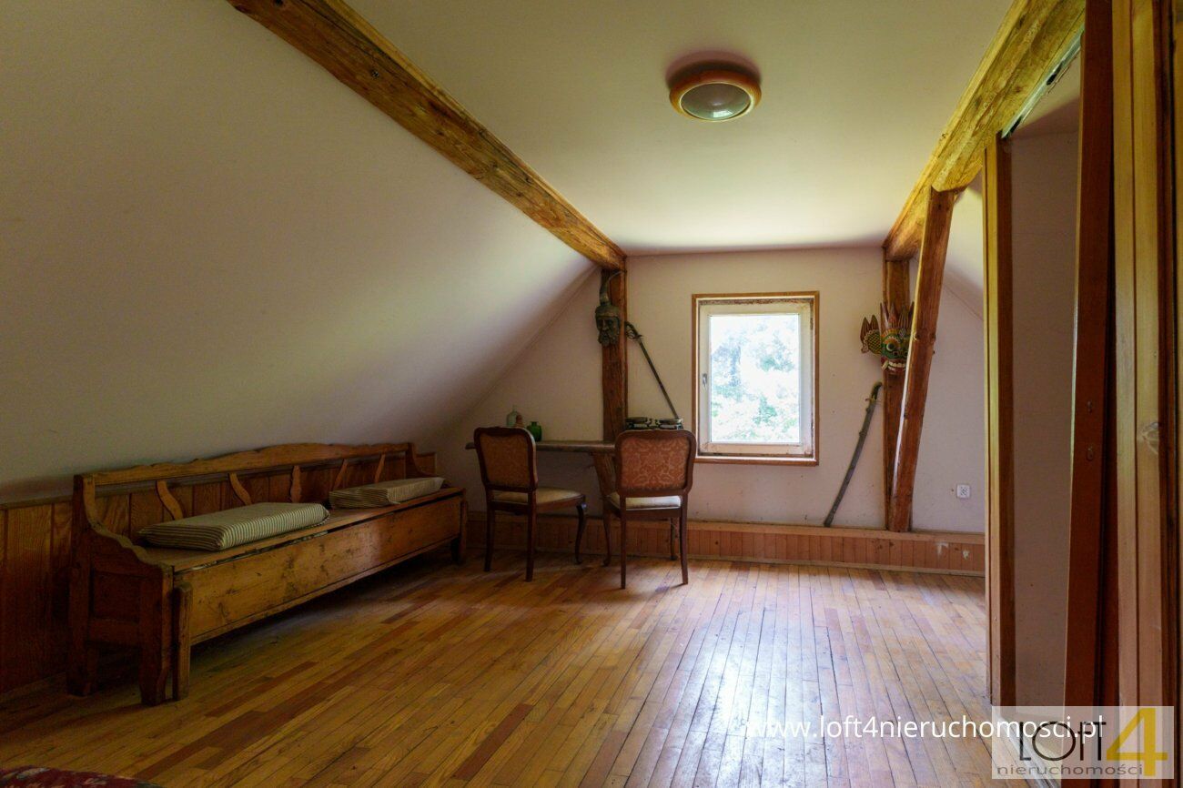 Ladies and gentlemen, mamy przyjemność przedstawić Wam nietuzinkową, zapierającą dech w piersiach okazję zamieszkania w terenie, gdzie każde drzewo opowie Wam swoją historię.Zacznijmy tą opowieść od domu - w końcu to w nim zamieszkanie - ma on powierzchnię całkowitą niespełna sto dziewięćdziesiąt metrów kwadratowych. Na dolnym poziomie, znajdziecie uroczą kuchnię prowadzącą do salonu z kominkiem. Pewnie już wyobrażacie sobie magiczne, zimowe wieczory, gdzie przy lampce wina delektować się będziecie wszech otaczającą Was sielanką. Drugi pokój parteru idealnie sprawdzi się jako gabinet czy sypialnia, to już zależy tylko od Waszych pragnień. Na tej kondygnacji znajdziecie jeszcze dużą łazienkę z wanną, kolejną łazienkę z kabiną prysznicową oraz miejsce, które być może idealnie sprawdzi się jako garderoba czy gabinet do pracy. Po wejściu na piętro czekają rzy przechodnie pokoje, obecnie wykorzystywane jako miejsce dla gości, ale zaaranżujecie jak tylko będziecie chcieli. Dodatkowo budynek gospodarczy oraz mała piwnica, w której mieści się kotłownia.